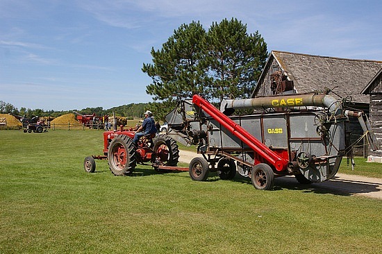 Every summer we had the oats ‘thrashing’; I suppose more refined places called it ‘threshing’. This required a large crew, so all the neighborhood farmers worked together and harvested each farm consecutively.
